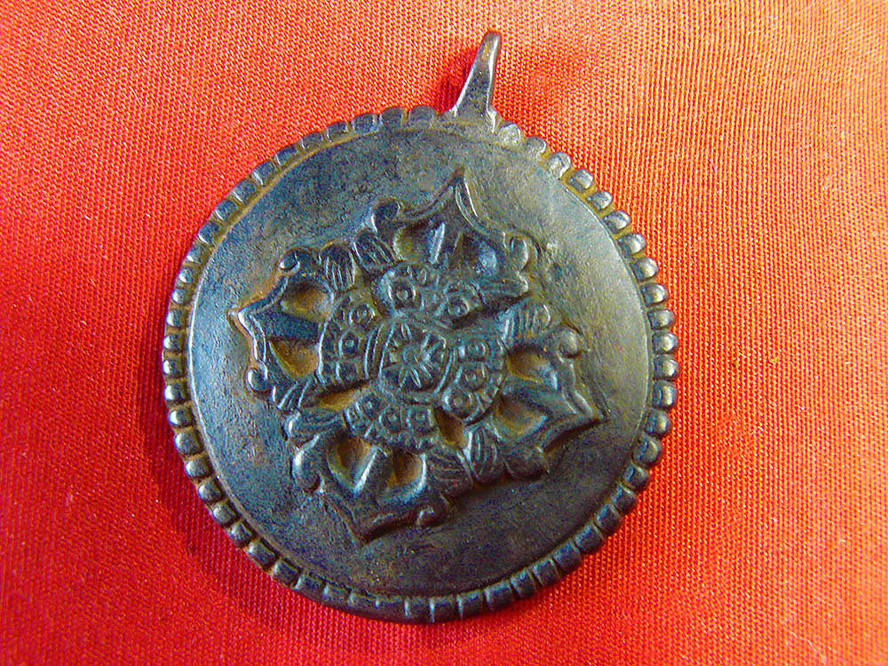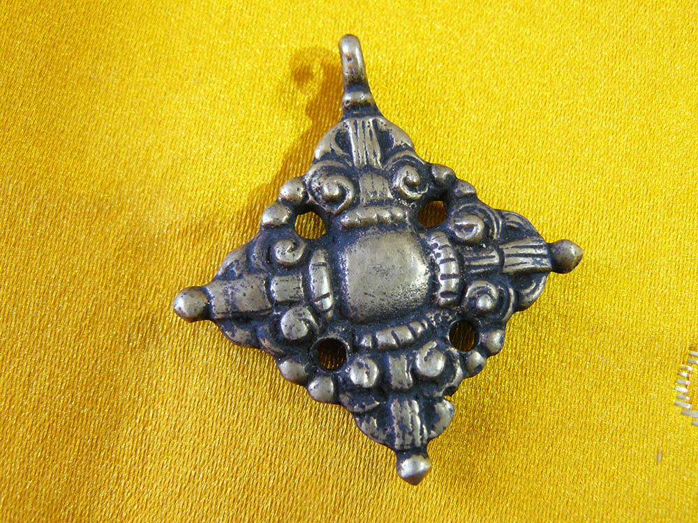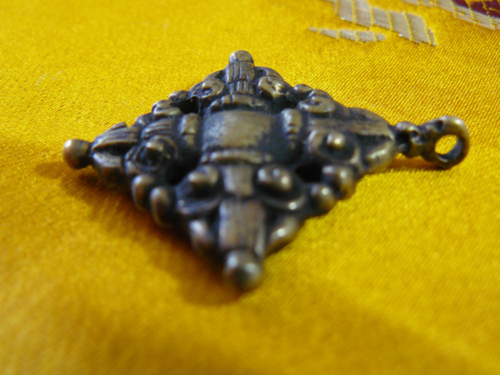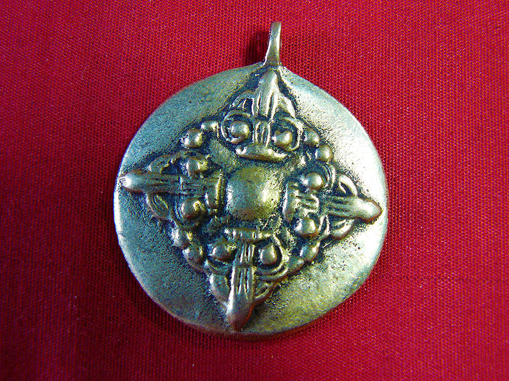 A traditional protection amulet with a double dorje on one side.