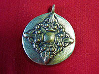 A melong type amulet (Buddhist ritual mirror), with a double dorje upon it.