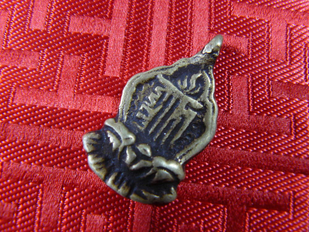 An old bronze amulet of the Tibetan Buddhist form of Ganesha the Hindu Elephant headed god.